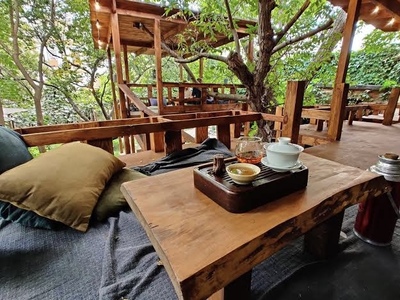 Дизайн інтер’єру вражає з першої ж миті: затишні дерев’яні будиночки, м’яке, тепле світло, що наповнює простір, тонкий аромат елітних чаїв і дзвін тиші. Тут можна спробувати різні формати чаювання — від розмірених бесід за чашкою Пін Ча до витонченої та ритуальної церемонії Гунфу Ча. Це не просто чайна, а справжній простір спокою, де час сповільнює свою ходу, дозволяючи відчути кожну нотку смаку.