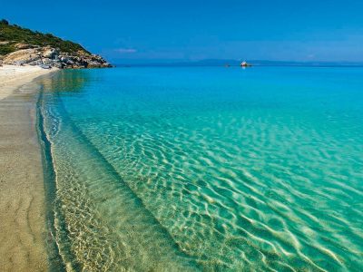 У Халкідіках ти знайдеш усе — від широких піщаних смуг із пологим заходом у воду до усамітнених бухт зі скелястими краєвидами. Вода тут настільки прозора, що видно дно на кілька метрів углиб.