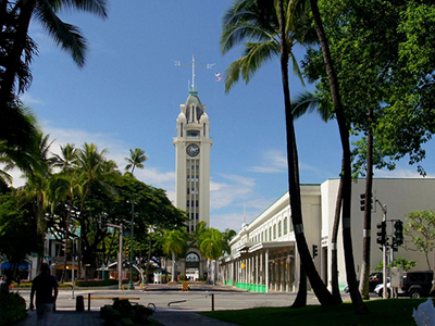 Вежа Алоха розташована на пірсі номер 9 в Гонолулу. Побудована вежа була у 1924 році, і на той час була найвищою будівлею на Гаваях. Її висота становить 56 метрів, а флагшток, на якому встановлено кулю часу, має висоту майже 13 метрів. Раніше спеціальна сирена о 7, 12 та 16 годинах сповіщала населення про час, але пізніше її стали використовувати для зустрічі кораблів, що прибувають, а також для попередження жителів про цунамі або пожежу.