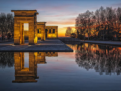 Як поїхати додому без посиденьок на заході сонця? Храм «Дебод» — найдоречніше місце. Це маленький острівець давньоєгипетської культури, що гармонійно вписався в паркову зону сучасного Мадрида. Усередині можна побачити єгипетські малюнки на стінах і макет храму.