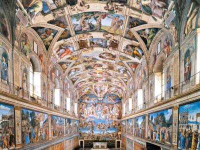 Ще одним дивом архітектури є Сікстинська капела, знаменита своїми розписами, створеними Мікеланджело. Склепіння та фреска «Страшний суд» на стіні за вівтарем вважаються вершиною ренесансного мистецтва, де кожен штрих пензля несе величезну духовну і художню цінність.